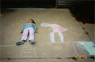 Which is sidewalk chalk and which is me? Can you tell? Me with my artwork.